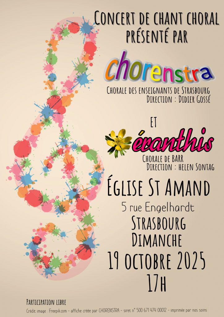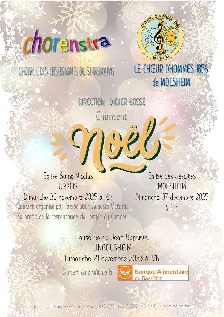 – Dimanche 1er décembre avec le Chœur d’Hommes 1856 de Molsheim à 16h à l’église SS. Pierre & Paul d’OBERNAI
